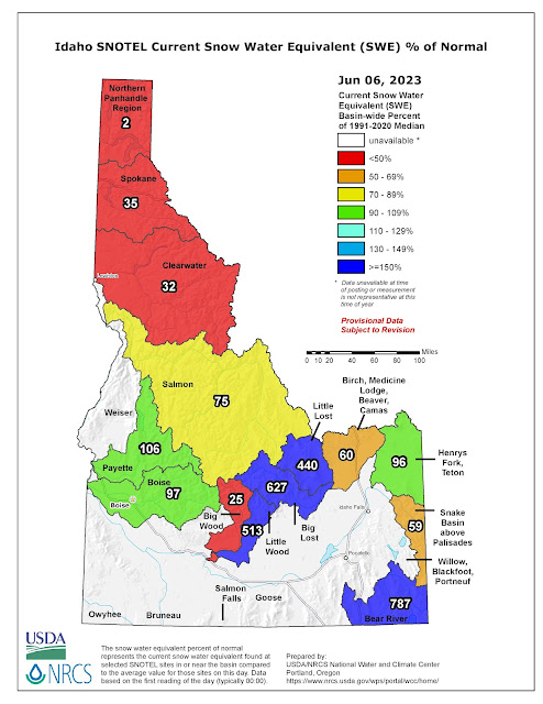 Idaho And Western United States SNOTEL Water Year (Oct 1) to Date Precipitation % of Normal (6/6)